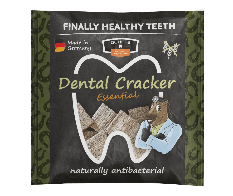 Die Zahnputz-Cracker Essential sind speziell für Pferde entwickelt- werden geknuspert und die antibakteriellen Peptide aus dem Milchprotein verteilen sich dabei über den Speichel und unterstützen die Maulflora. Das spezielle Milchprotein wird bereits im Dünndarm resorbiert- ist leicht verdaulich. Ohne Laktose und unnötige Zusatzstoffe. Der Inhalt hält für 1 Woche.